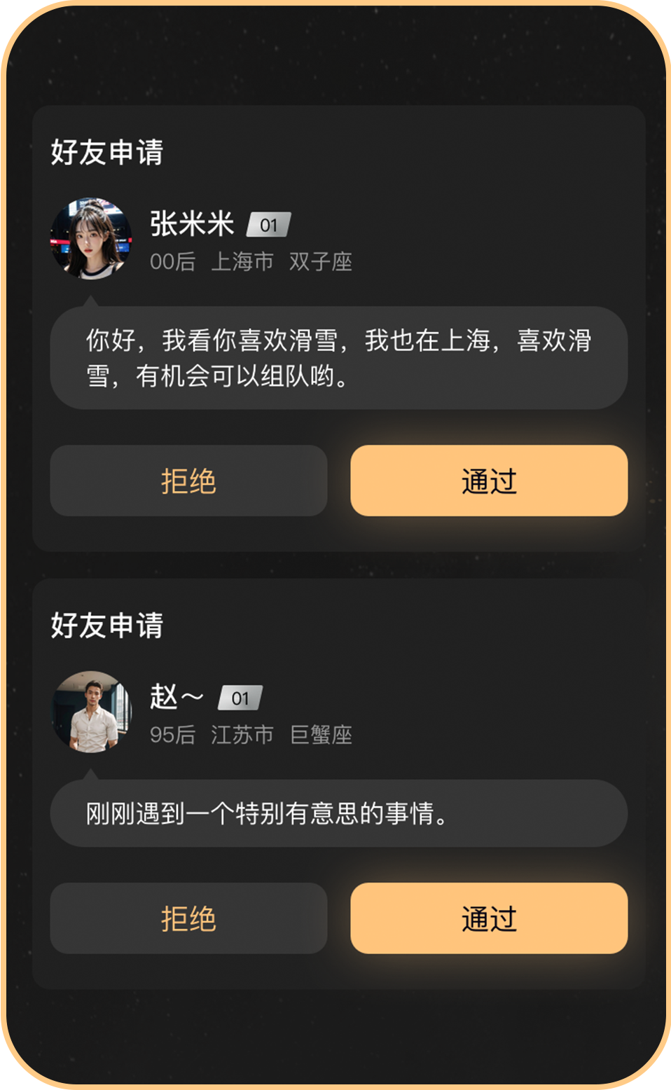 事实上你不是在做数据统计,不需要如此大量的信息,你只是想找到对的那个TA。这就是BIMO的设计初衷,为你屏蔽海量低质数据与机器人消息。 在BIMO只有真人才能联系你,并且经过你的许可,对方才能与你展开对话。